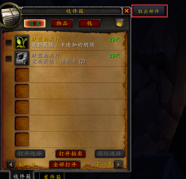邮件里有某个材料,命中比如 海洋墨水,背包里有21个,但是这封邮件里是20个,不取出,如果设置的是 40上限,自己有19个,邮件有20个,取出。