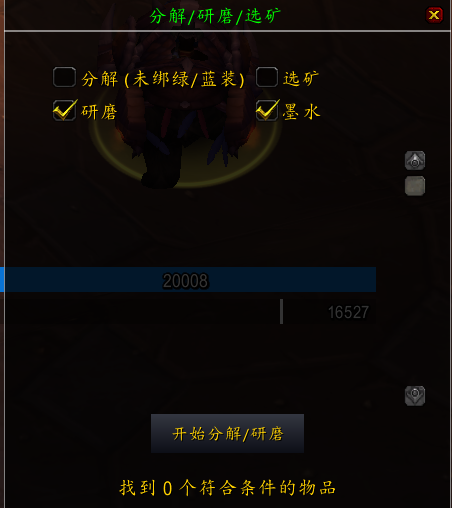 - 分解窗口:显示分解窗口(窗口可勾选,分解,选矿,研磨,墨水) (分解按钮绑定快捷键F7)