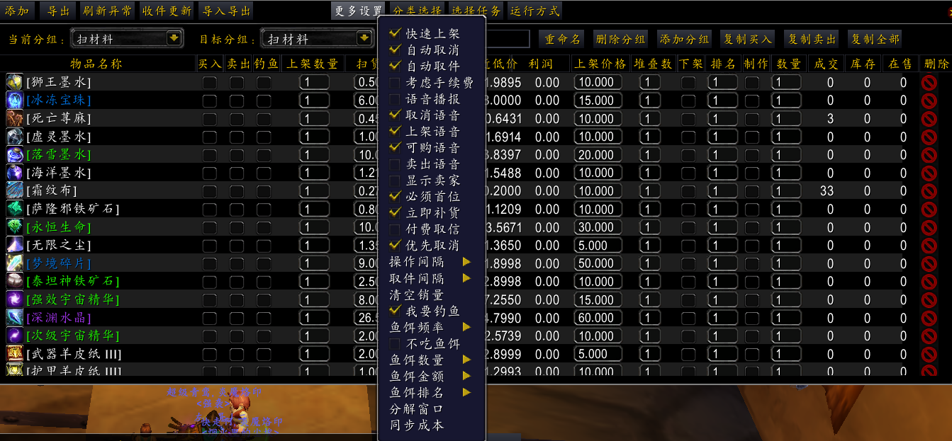 - 鱼饵排名:当有大量小于指定堆叠数的商品,买入指定排名以外商品。
